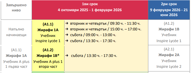 График курсове 2025/2026 – 1ви СРОК тийнейджъри 12г.-16г.