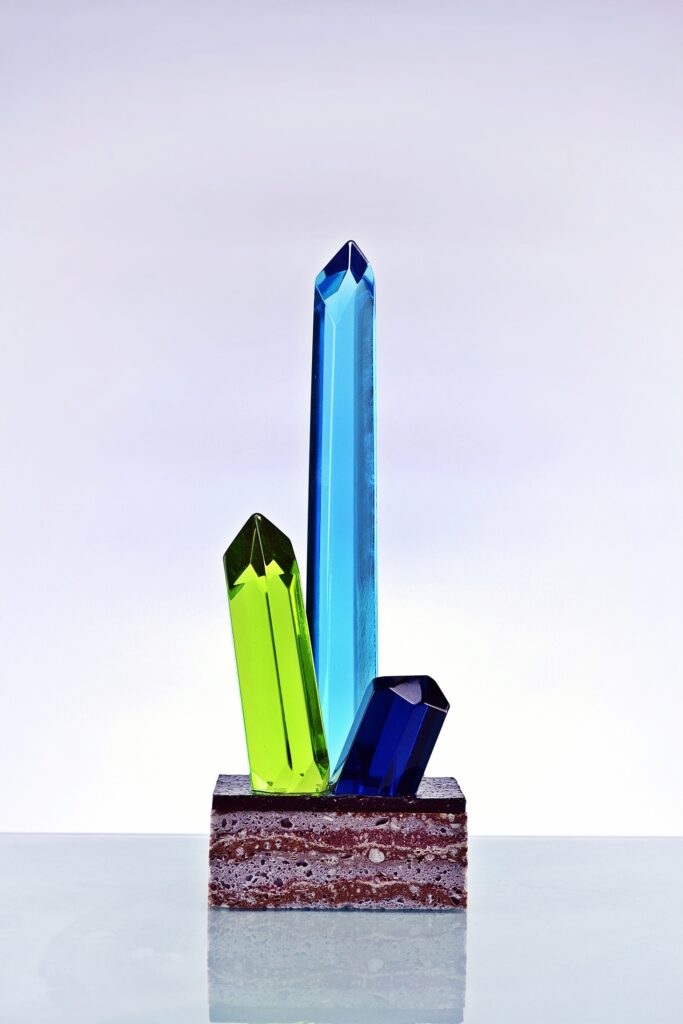 – Мартин Луттрингер, която изследва многобройните аспекти на стъклото, като играе със светлината и отраженията, създавайки скулптурни и вибриращи произведения;