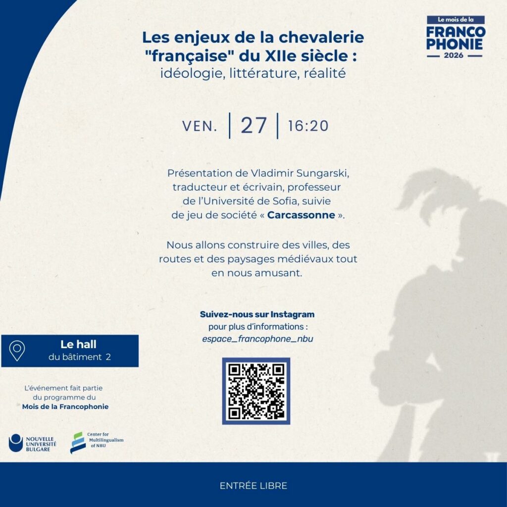18 март 2026, Франкофонски център на Софийския университет «Св. Климент Охридски» (бул. Цар Освободител 15, северно крило, ет. 4)