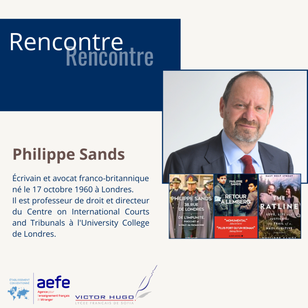 Училището има честта да посрещне Филип Сандс, международно признат адвокат и писател, специалист по важни въпроси, свързани с правосъдието и историческата памет.