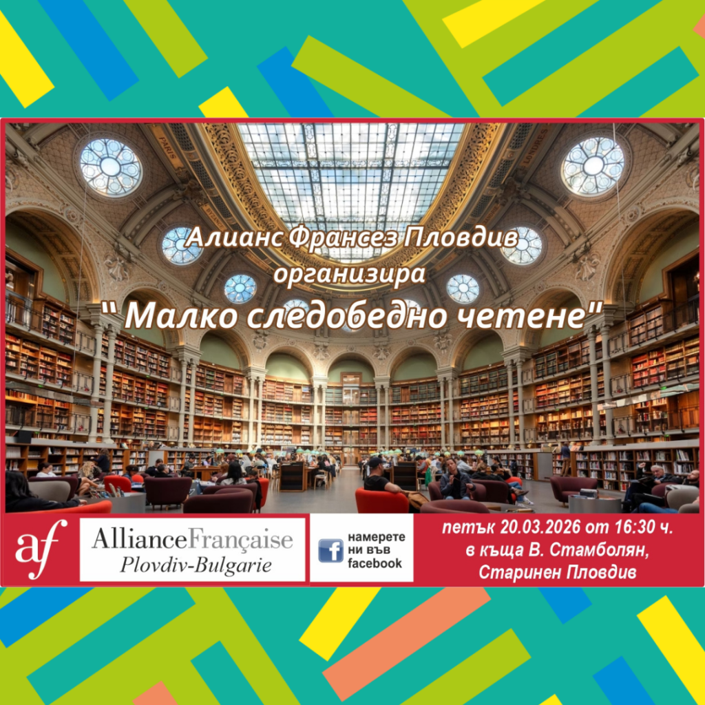 Присъединете се към нас в петък, 16 януари, от 18:00 до 20:00 ч. в медиатеката, за да споделим едно забавно преживяване и да упражните френския си език в непринудена атмосфера.
