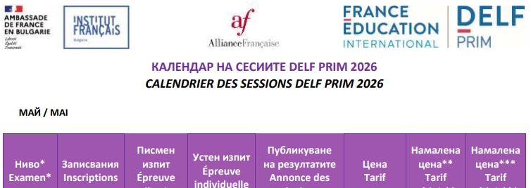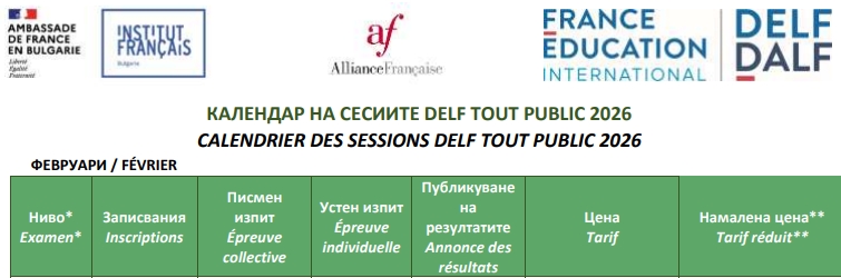 Календар на изпитните сесии DELF / DALF за 2026 година и цени